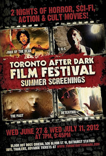 The first screning was the zombie comedy Juan of the Dead, which I saw at TIFF last year. (You can read my spotlight on the film here). Definitely an audience favourite. I was able to watch The Pact and V/H/S from this four-film series.
